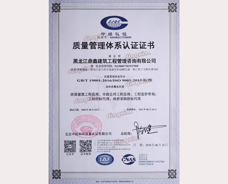 黑龍江鼎鑫建筑工程管理咨詢有限公司成立于2005年,注冊資金400萬元。具備中華人民共和國住房和城鄉建設部批準的工程招標代理機構資格、中華人民共和國財政部批準的政府采購招標代理機構資格、黑龍江省商務廳批準的機電產品國際招標代理機構資格、中華人民共和國住房和城鄉建設部批準的工程造價咨詢甲級資質、黑龍江省住房和城鄉建設廳批準的房屋建筑工程監(jiān)理乙級(市政公用工程監(jiān)理乙級資質)。主要從事建設工程及政府采購招標、造價咨詢、工程監(jiān)理、項目管理等業(yè)務。